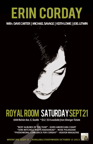 In support of the upcoming U.S. release of my album Where The Body Is, I'll be returning to Seattle for my first full-length show in 10 years at the Royal Room.